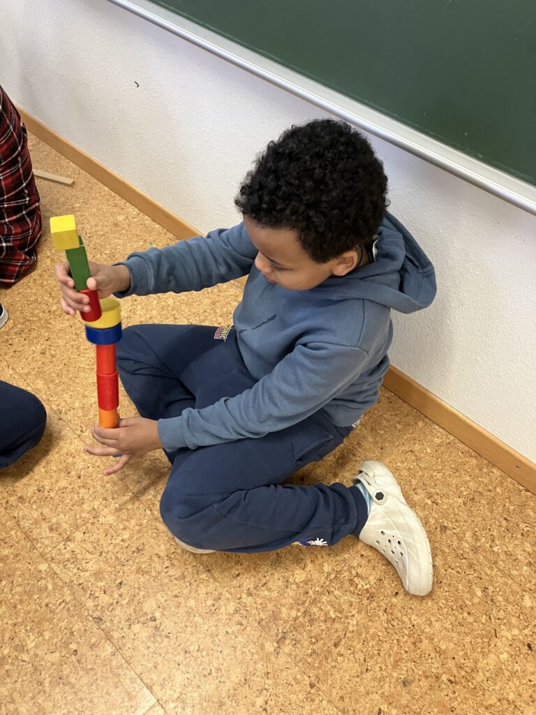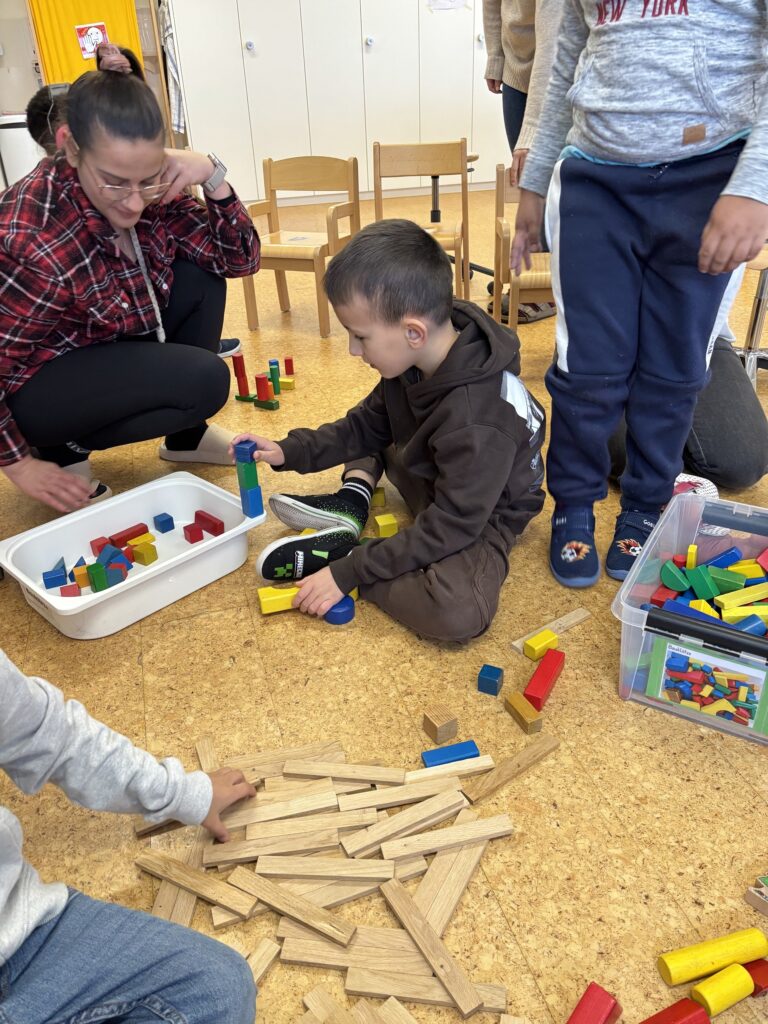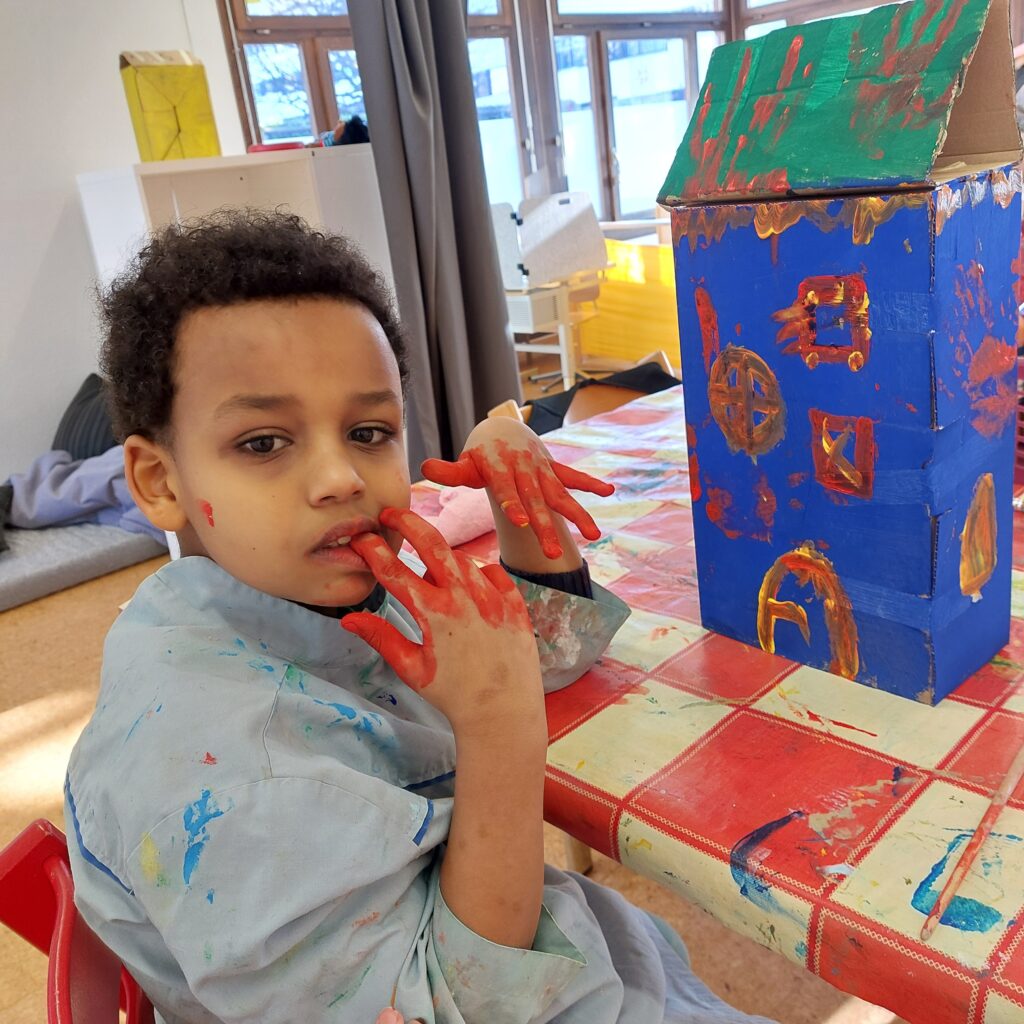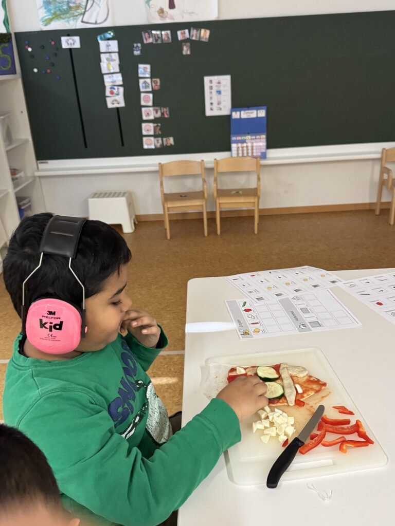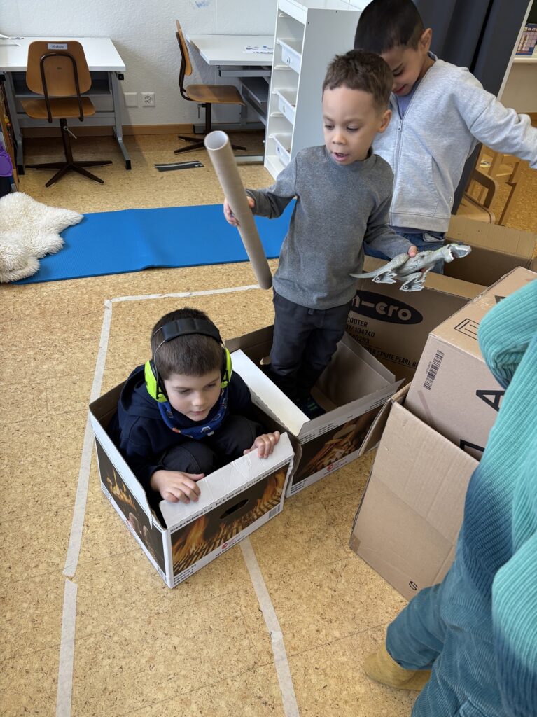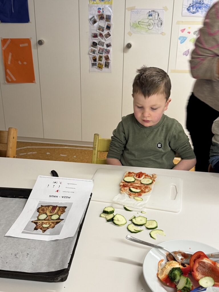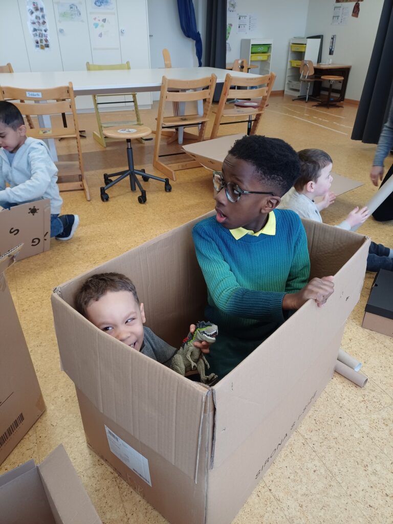 Nach den ruhigen Zeiten im Advent starten wir kreativ ins neue Jahr. Billy Betonmischer besucht uns wieder im Unterricht. Er bringt uns viele Tücher und Kartonschachteln mit. Billy hat sein Zuhause in einer Kartongarage und möchte wissen, wie wir wohnen. Wir erkunden die grossen Kartonschachteln, erstellen farbige Häuser und bauen Hütten. Die Bilder der Zimmer der einzelnen Schülerinnen und Schüler werden besonders genau betrachtet. Das Highlight der Woche erwartet uns jeweils am Mittwoch im Kochen. Wir erstellen leckere Pizza-Häuser.