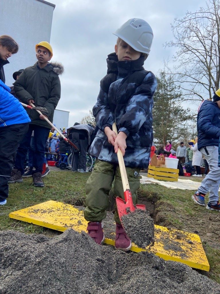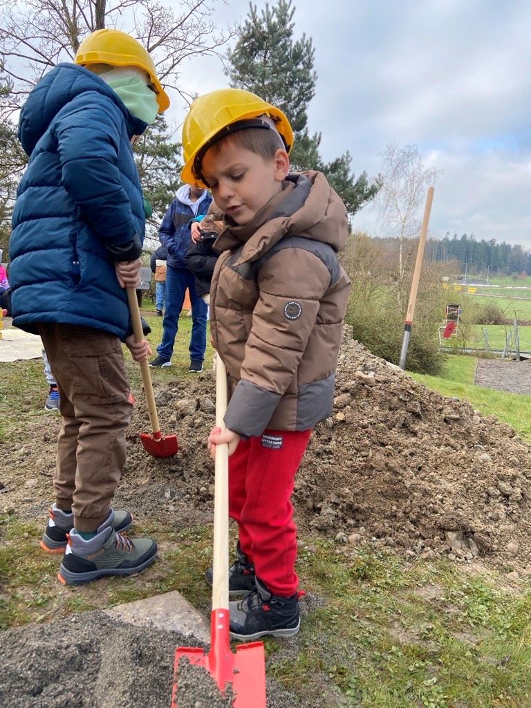 Ein besonderes Erlebnis war der Spatenstich für unsere neue Schule. Wir haben zugeschaut, wie gebaggert und gebaut wird. Die grossen Bagger sind sehr spannend und wir können täglich viel Neues entdecken und beobachten.