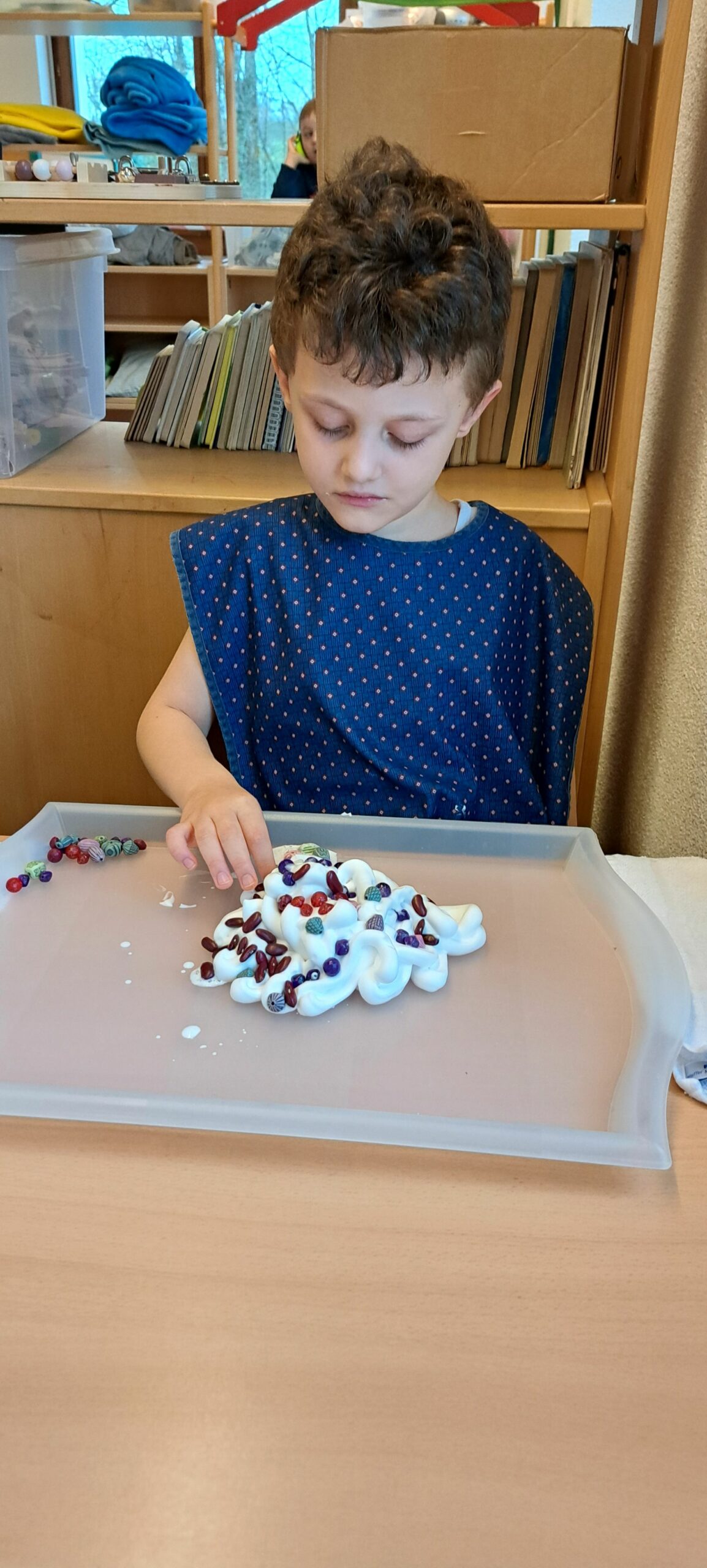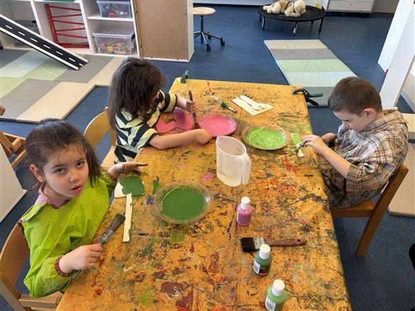Wir haben Ostereier bemalt und dabei die Farben angeschaut und gespürt. Mit Pinseln und Händen sind bunte Eier entstanden. Beim Backen von Osterkeksen konnten wir den Teig kneten, den feinen Duft riechen und die Kekse natürlich auch probieren – das war besonders lecker! Auch der Osterhase hat uns begleitet. Wir haben gebastelt, Materialien gefühlt, Geschichten gehört und gemeinsam gespielt.